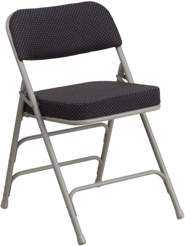 (Pack of 4) Series Premium Curved Triple Braced & Double Hinged Black Pin-Dot Fabric Metal Folding Chair